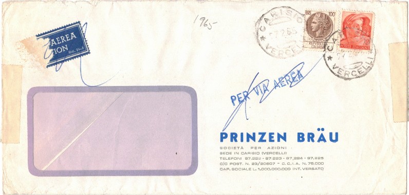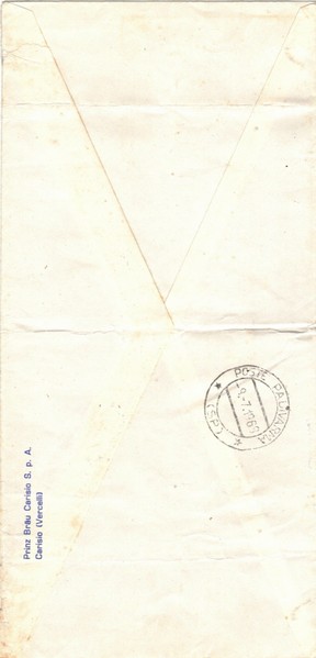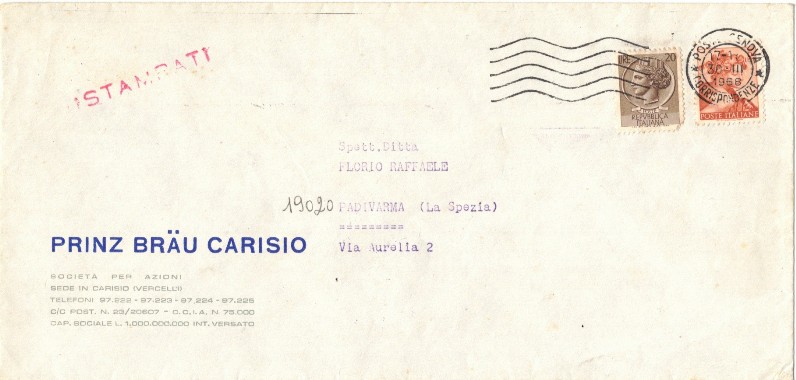con Poste Genova Ferr. Corrisp il 04.07.1968 arrivata a Poste Padivarma (SP) IT il 08.07.1968